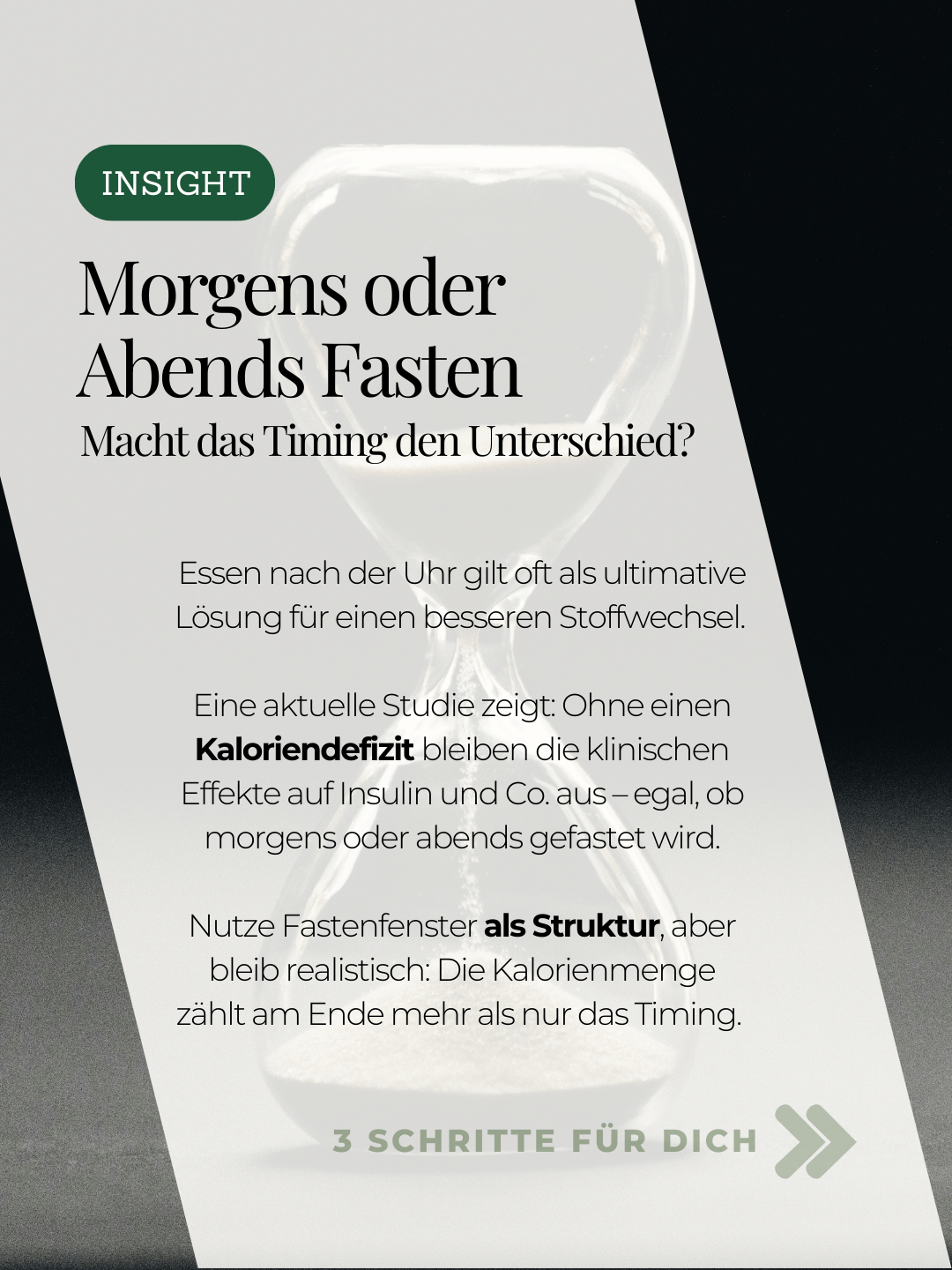 Wenn du abnehmen oder deine Insulinsensitivität verbessern willst, achte auf dein moderates Kaloriendefizit. Das Fenster ist nur der Rahmen dafür.