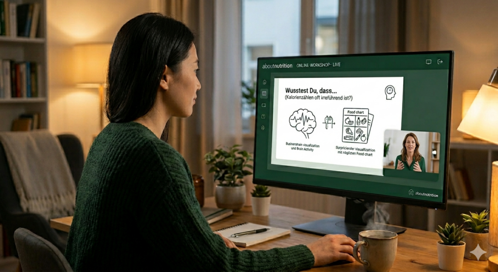 Suchst du nach wissenschaftlicher Tiefe ohne feste Termine? Meine Online-Workshops bieten dir die psychologischen Werkzeuge und das Fachwissen, um dein Essverhalten selbstbestimmt und flexibel von zu Hause aus zu verändern.